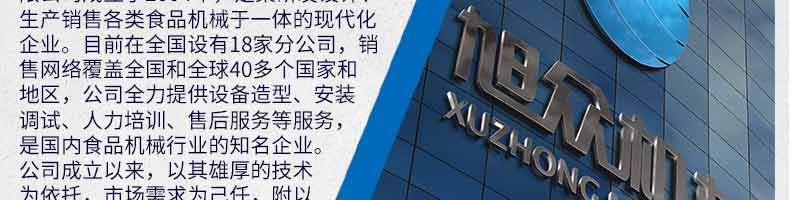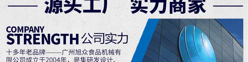 廣州旭眾食品機(jī)械有限公司是一家集科研開發(fā),生產(chǎn)設(shè)計,營銷服務(wù)為一體的現(xiàn)代化生產(chǎn)企業(yè)。現(xiàn)代化生產(chǎn)車間,精湛制造技術(shù),所產(chǎn)機(jī)械歷經(jīng)市場重重考驗,不斷贏得海內(nèi)外客戶的贊譽(yù)。