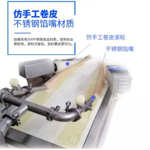 SZ-509腐皮卷機,六大產品特點仿手工制作原理特有設計:雙餡嘴、園形切刀、不銹鋼、可調控、大容量料斗、一機多用。餡嘴采用304不銹鋼食品材質,使用安全更耐用。滾輪式卷餡,餡料裹皮更均勻。