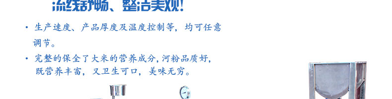 SZ-HF-80高效節能河粉機,用高效節能河粉機生產的河粉,完整保全了大米的營養成分,河粉品質一流,既營養豐富,又衛生可口、美味無窮。