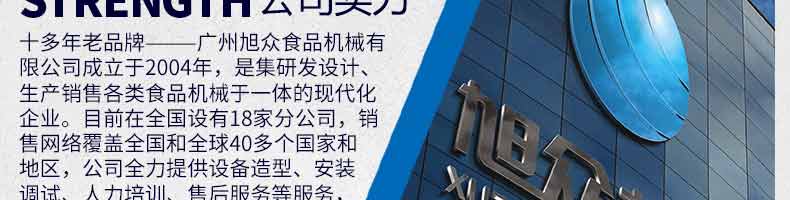 廣州旭眾食品機(jī)械有限公司是一家集科研開發(fā),生產(chǎn)設(shè)計(jì),營銷服務(wù)為一體的現(xiàn)代化生產(chǎn)企業(yè)。現(xiàn)代化生產(chǎn)車間,精湛制造技術(shù),所產(chǎn)機(jī)械歷經(jīng)市場重重考驗(yàn),不斷贏得海內(nèi)外客戶的贊譽(yù)。