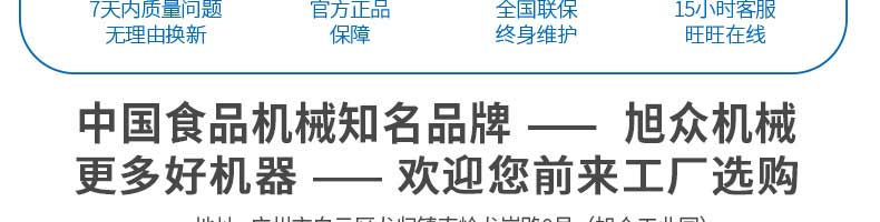 廣州旭眾食品機械有限公司是一家集科研開發,生產設計,營銷服務為一體的現代化生產企業。現代化生產車間,精湛制造技術,所產機械歷經市場重重考驗,不斷贏得海內外客戶的贊譽。