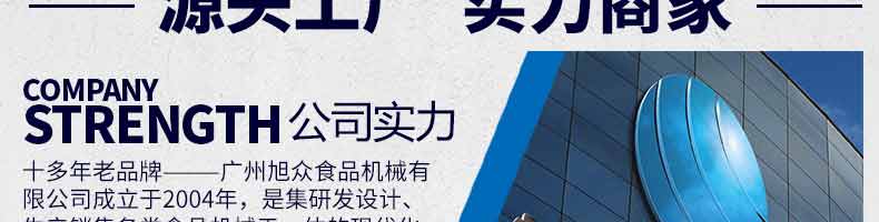 廣州旭眾食品機(jī)械有限公司是一家集科研開發(fā),生產(chǎn)設(shè)計(jì),營(yíng)銷服務(wù)為一體的現(xiàn)代化生產(chǎn)企業(yè)。現(xiàn)代化生產(chǎn)車間,精湛制造技術(shù),所產(chǎn)機(jī)械歷經(jīng)市場(chǎng)重重考驗(yàn),不斷贏得海內(nèi)外客戶的贊譽(yù)。