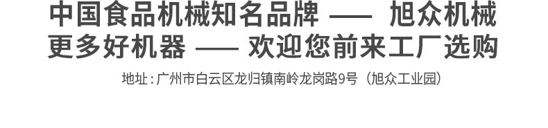 廣州旭眾食品機械有限公司是一家集科研開發,生產設計,營銷服務為一體的現代化生產企業?,F代化生產車間,精湛制造技術,所產機械歷經市場重重考驗,不斷贏得海內外客戶的贊譽。