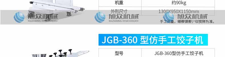 JGB-210型仿手工餃子機,本機采用自動壓面皮包餃子的新工藝技術,本機可生產速凍餃子等,能生產各種肉餡、肉菜混合餡、全菜餡及其他種餡的餃子,適用于餃子館、食品生產廠家、賓館、飯店、餐廳、團體食堂、學校、部隊。免費上門安裝調試,贈送面點工藝