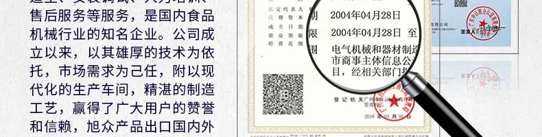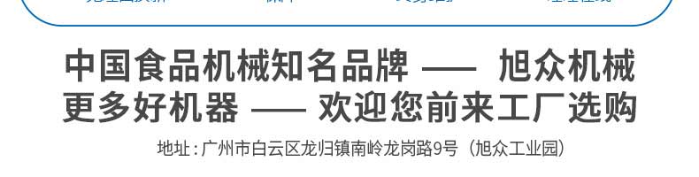 廣州旭眾食品機(jī)械有限公司是一家集科研開發(fā),生產(chǎn)設(shè)計(jì),營銷服務(wù)為一體的現(xiàn)代化生產(chǎn)企業(yè)。現(xiàn)代化生產(chǎn)車間,精湛制造技術(shù),所產(chǎn)機(jī)械歷經(jīng)市場重重考驗(yàn),不斷贏得海內(nèi)外客戶的贊譽(yù)。