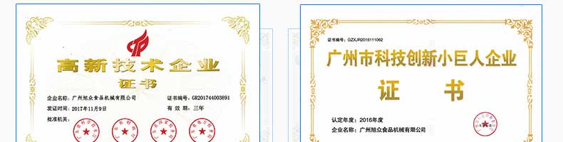 廣州旭眾食品機械有限公司是一家集科研開發,生產設計,營銷服務為一體的現代化生產企業。現代化生產車間,精湛制造技術,所產機械歷經市場重重考驗,不斷贏得海內外客戶的贊譽。