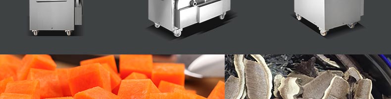 XZ-680A多功能切菜機,一機多用,可切葉菜及根莖類蔬菜,并可切片、絲、條、丁、段,碎等,切菜規格可根據不同需要調節尺寸,方便快捷。隨機共配送三套刀具。