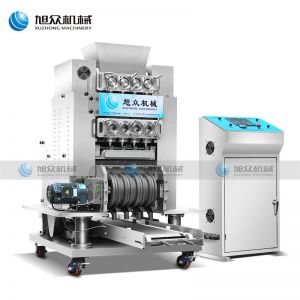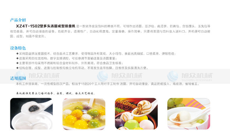 XZ4T -1502多頭湯圓成型排盤機(jī),湯圓機(jī),本機(jī)只要將面團(tuán)放入進(jìn)料口,開機(jī)便可自動搓圓、成型的設(shè)備,一次性成型四次產(chǎn)品,制品不易變形,工作效率高