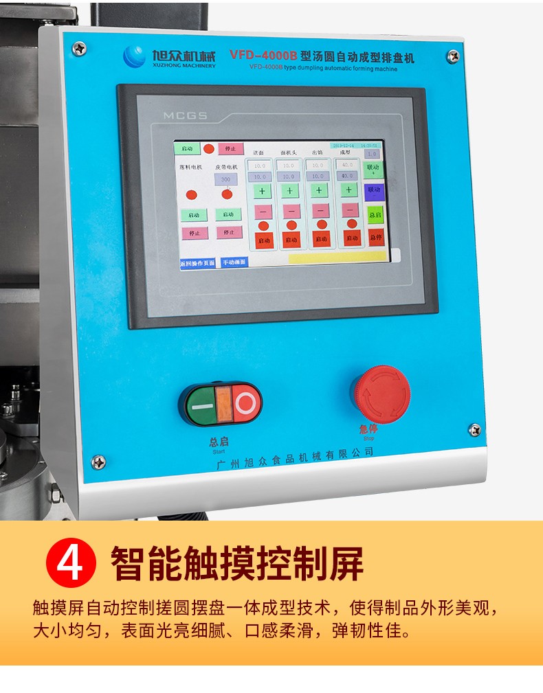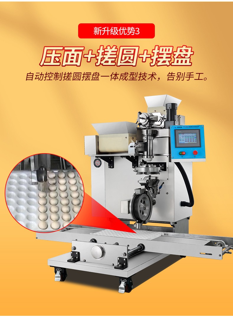 ◆觸摸屏自動控制搓圓擺盤一體成型技術,使得制品外形美觀,大小均勻,表面光亮細膩、口感柔滑,彈韌性佳。