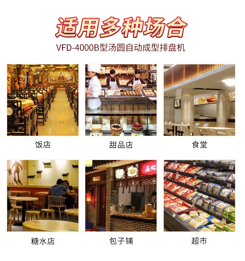 今天給大家介紹一下這款VFD-4000B型湯圓機,為什么要介紹它呢,這款機械制作多品種食品,關鍵是產量效率高,1小時的產量可達5000個,相當于20-30個工人同時手工制作湯圓,真正的低投入,高收益,省錢省工,可制作各式包餡食品,如湯圓、豆沙包、南瓜餅等,是賓館、飯店、企業、學校、部隊等公共食堂和專業戶理想的面食機械。