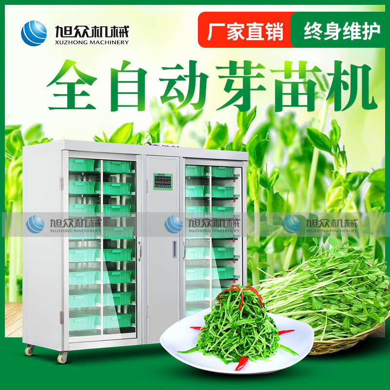 芽苗機系列,全自動芽苗機:智能化一生產安全無公害的芽苗,智能控溫、定時淋水、自帶照明裝置,給芽苗提供一個適宜生長的溫度,濕度,個人即可輕松搞定,實現每天循環生產芽苗!
