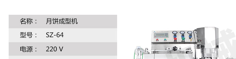 SZ-64月餅自動成型機,可同于制作各種月餅,適合印制各種月餅。適用于蛋糕房、休閑食品廠、食品加工產、面包房、月餅加工廠、超市、學校、食堂等各種工作場所??蓾M足不同客戶群體。免費提供工藝技術。